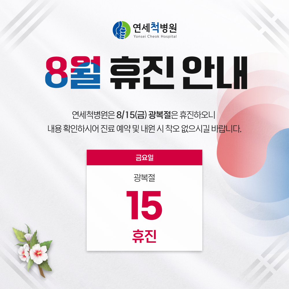 휴진일: 2025년 8월 15일(금) 감사합니다